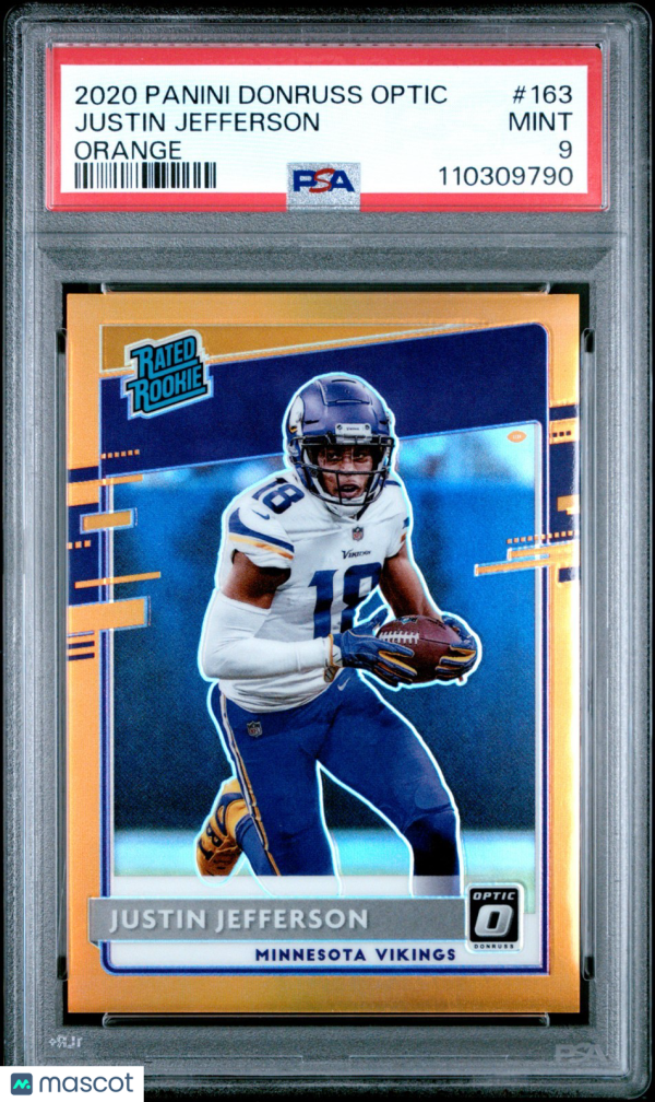 You are purchasing a 2020 Panini Donruss Optic Justin Jefferson #163 Orange Short Print 30/199 Rookie PSA 9. You will receive the exact item in the photographs.