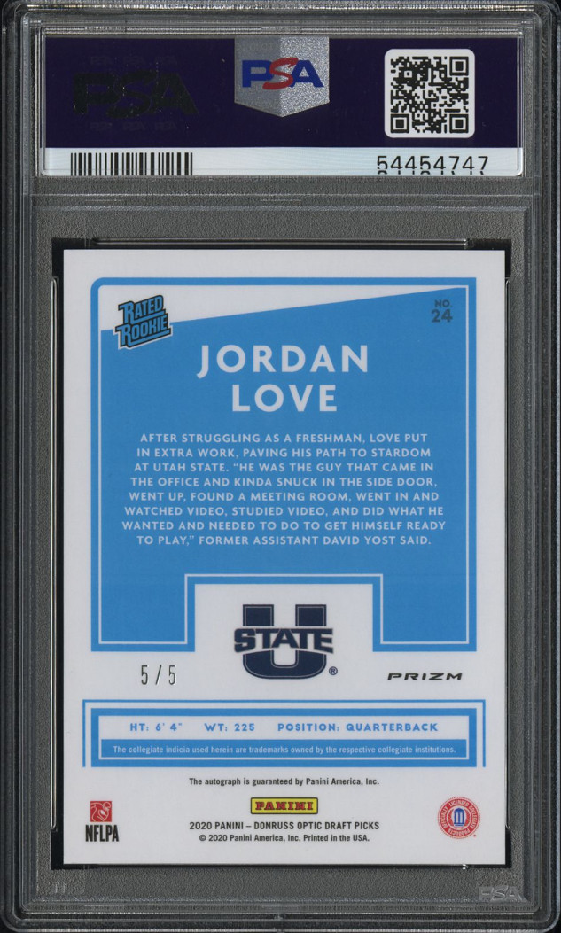 2020 Panini Chronicles Draft Picks Donruss Optic Rated Rookies Autographs Jordan Love Dnrs.optic Au-Green
