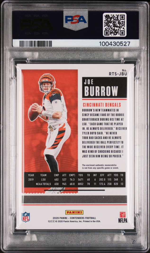 2020 Panini Contenders Rookie Ticket Swatches Joe Burrow Rookie Ticket Swatches