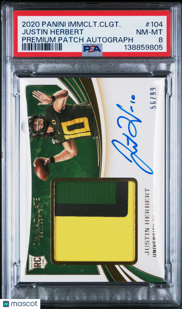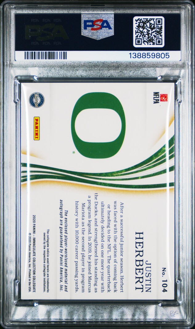 2020 Panini Immaculate Collegiate Justin Herbert #104 Premium Patch Autograph 66/95 PSA 8