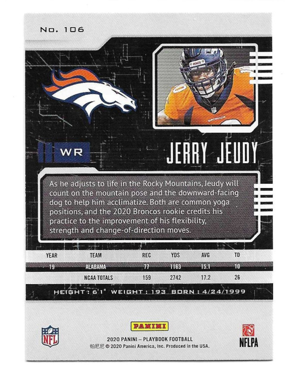 2020 PANINI PLAYBOOK #106 JERRY JEUDY (RC)