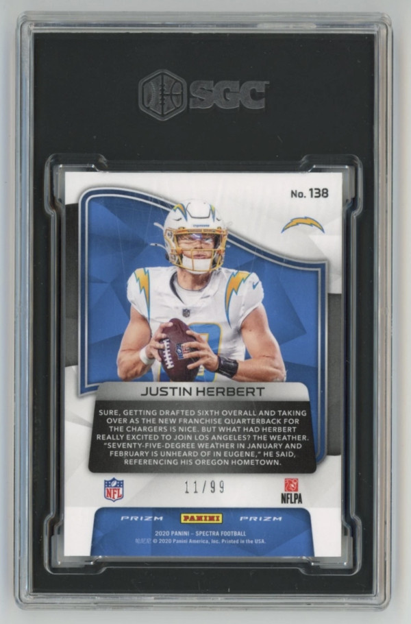2020 Panini Spectra JUSTIN HERBERT Rookie Card RC #/99 Los Angeles Chargers 138 - SGC 10 GEM