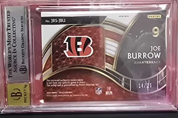 2020 Select Jumbo Rookie Signature Swatches Neon Orange Pulsar Prizm #1 Joe Burrow Beckett 9 Auto 10