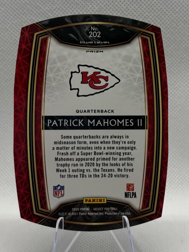 2020 Select Patrick Mahomes #202 Zebra