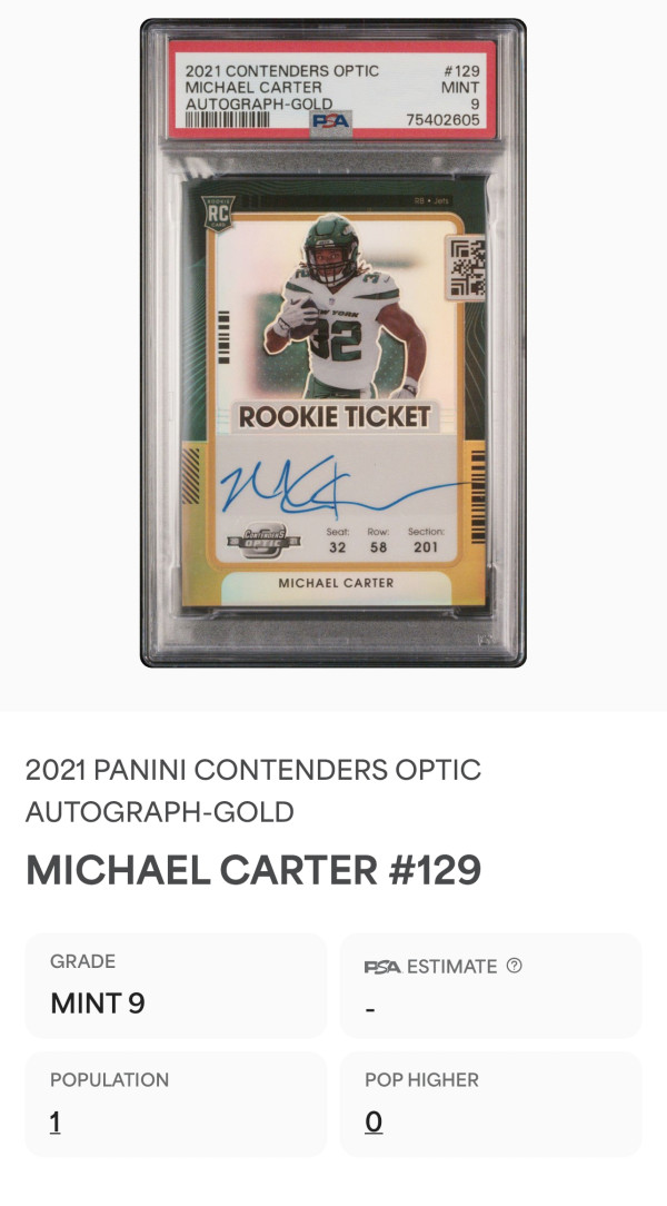 2021 CONTENDERS OPTIC MICHAEL CARTER AUTOGRAPH-GOLD