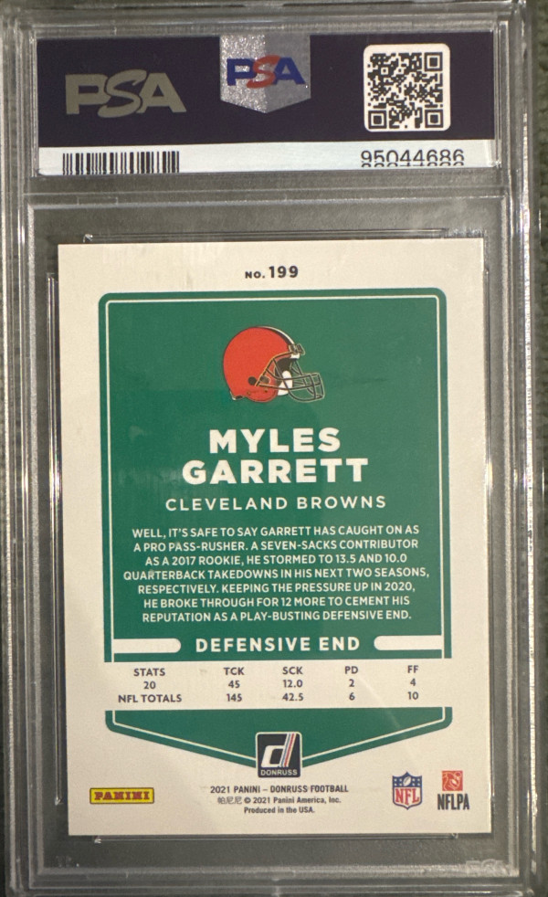 2021 Donruss Myles Garrett Press Proof Black 10/10 PSA 9