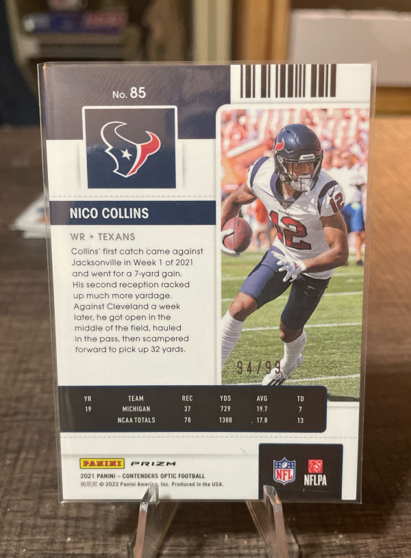 2021 Optic Contenders Rookie Ticket Blue Nico Collin’s 94/99 #85