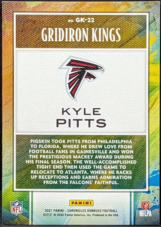2021 Panini Chronicles Gridiron Kings Pink Insert #GK-22 Kyle Pitts Atlanta Falcons RC