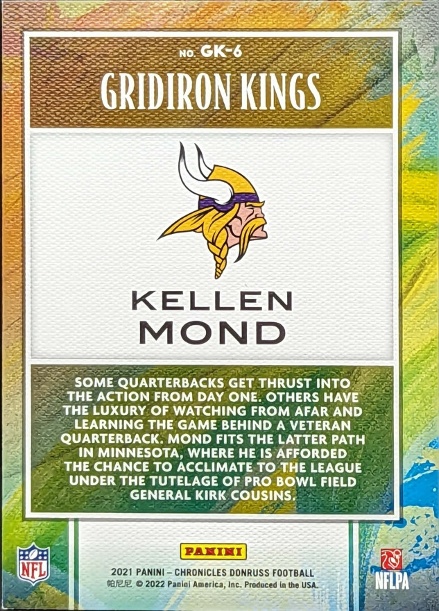 2021 Panini Chronicles Gridiron Kings Pink Insert #GK-6 Kellen Mond Minnesota Vikings RC