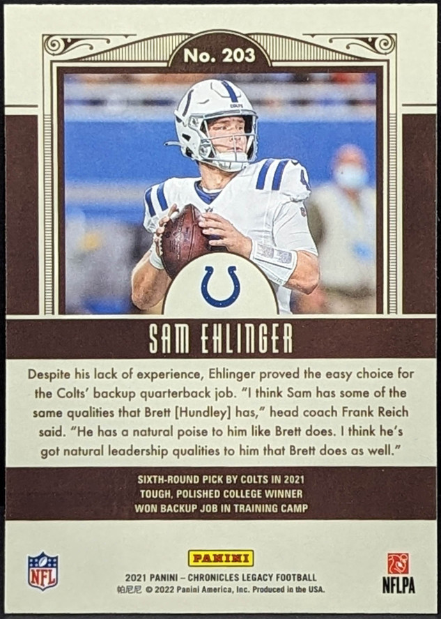 2021 Panini Chronicles Legacy Update Rookies Insert #203 Sam Ehlinger Indianapolis Colts RC