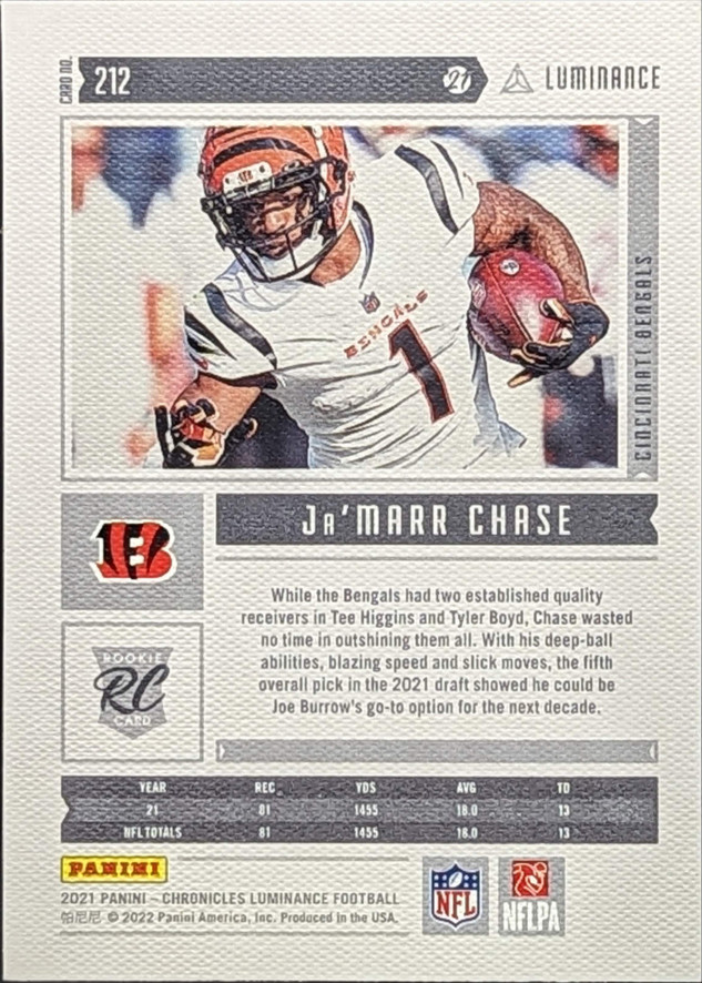 2021 Panini Chronicles Luminance Update Rookies Insert #212 Ja'Marr Chase Cincinnati Bengals RC