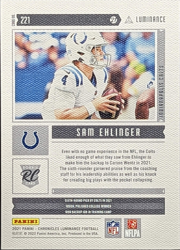 2021 Panini Chronicles Luminance Update Rookies Insert Green Parallel #221 Sam Ehlinger Indianapolis Colts RC