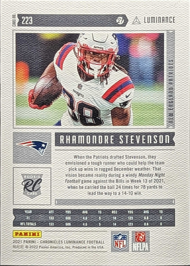 2021 Panini Chronicles Luminance Update Rookies Insert Pink Parallel #223 Rhamondre Stevenson New England Patriots RC