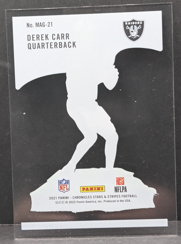 2021 Panini Chronicles Magnitude Insert #MAG-21 Derek Carr Las Vegas Raiders Clear Acetate
