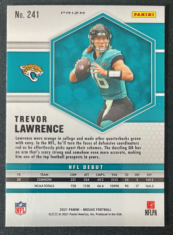 2021 Panini Mosaic Trevor Lawrence Orange Reactive Prizm #241