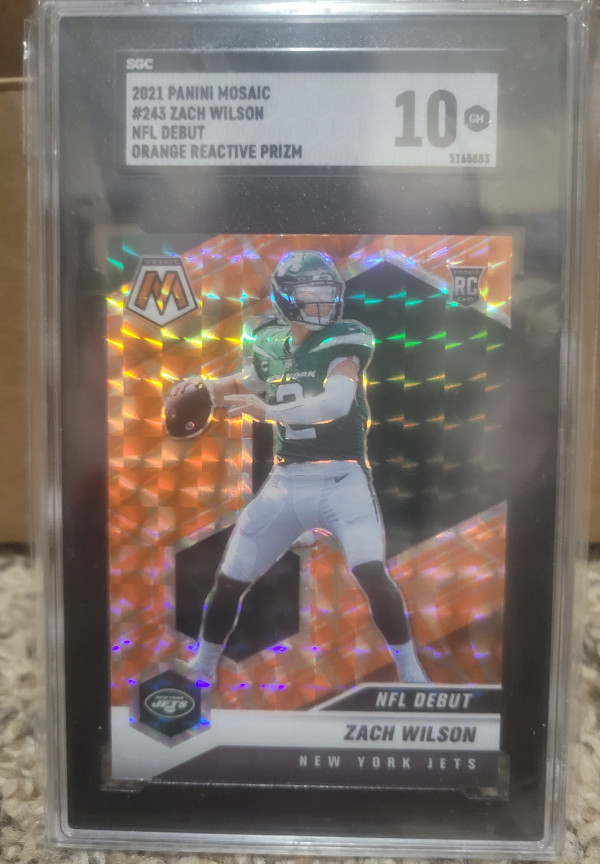 2021 Panini Mosaic Zach Wilson NFL Debut Orange Reactive Prizm