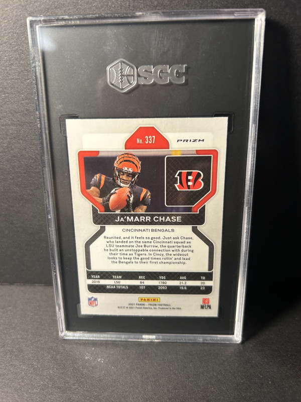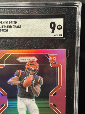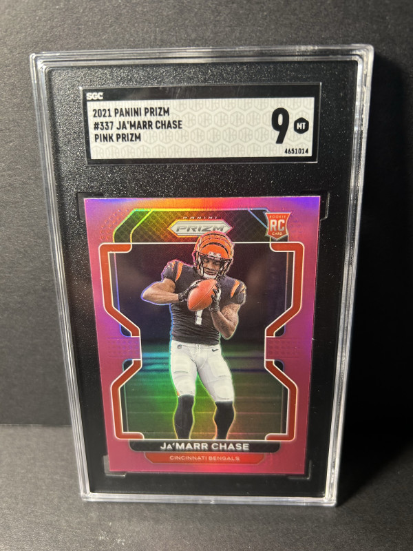 Up for Sale is it a pink parallel, prism, rookie card of Cincinnati, Cincinnati Bengals, Oprah wide receiver Ja’Marr Chase