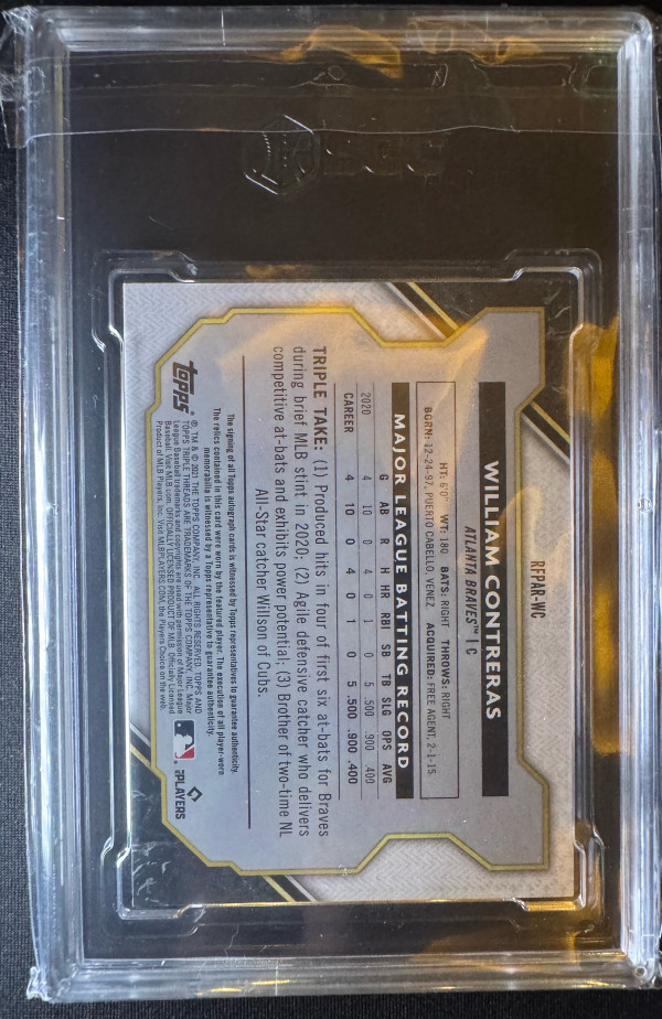 Now this is a card. Williams Contreras rookie card with 3 color patch and 3 patches total. On card auto and to /25. Card is also gold which you can see on certain parts of the card. This one has to go for someone’s PC. It’s just such a nice card. HMU for details and deals.