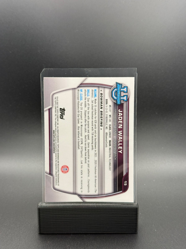 You are purchasing a 2022 Bowman Chrome University Football Jaden Walley #15. You will receive the exact item in the photograph/scan. Thank you for looking.
