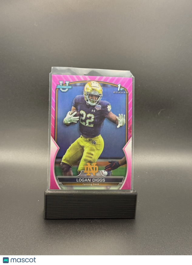 You are purchasing a 2022 Bowman Chrome University Football Logan Diggs #38 Pink Refractor 1st Bowman. You will receive the exact item in the photograph/scan. Thank you for looking.