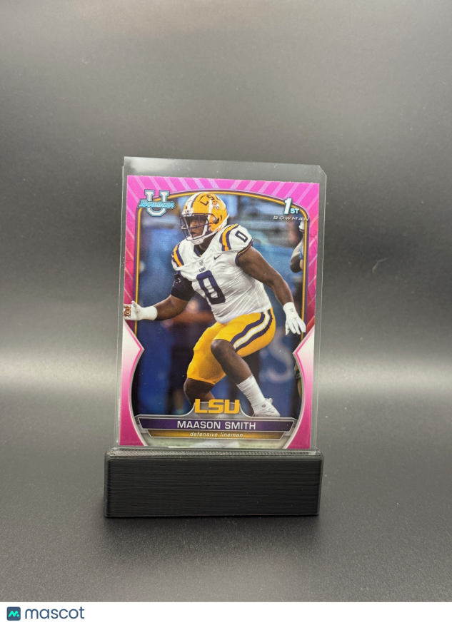 You are purchasing a 2022 Bowman Chrome University Football Maason Smith #8 Pink Refractor 1st Bowman. You will receive the exact item in the photograph/scan. Thank you for looking.