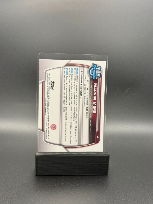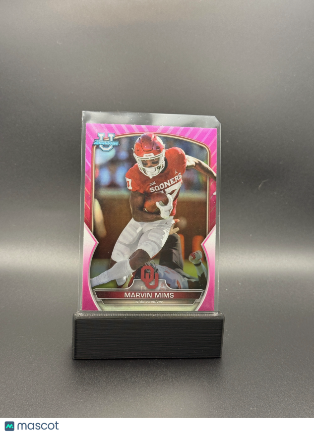 You are purchasing a 2022 Bowman Chrome University Football Marvin Mims #4 Pink Refractor. You will receive the exact item in the photograph/scan. Thank you for looking.