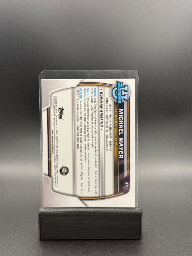 You are purchasing a 2022 Bowman Chrome University Football Michael Mayer #41 1st Bowman. You will receive the exact item in the photograph/scan. Thank you for looking.