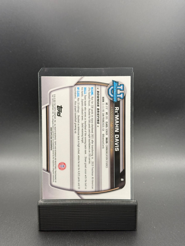 You are purchasing a 2022 Bowman Chrome University Football Re'Mahn Davis #8 1st Bowman. You will receive the exact item in the photograph/scan. Thank you for looking.