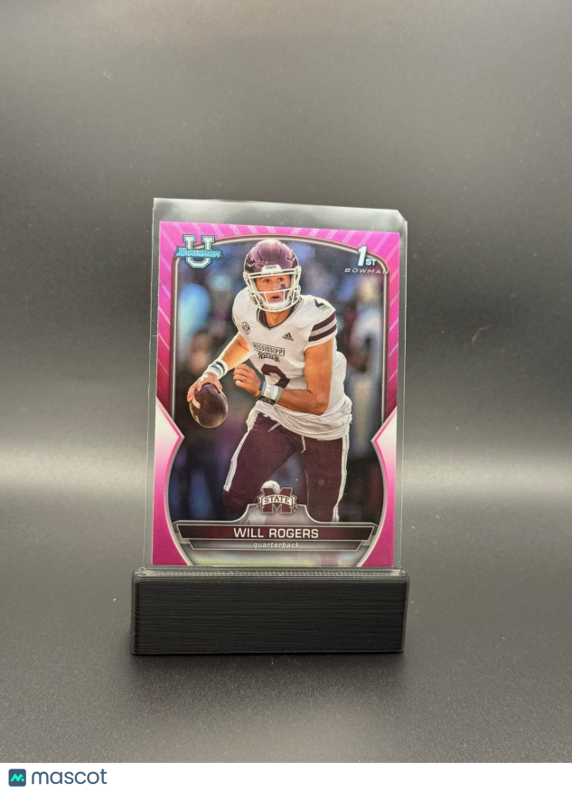 You are purchasing a 2022 Bowman Chrome University Football Will Rogers #46 Pink Refractor 1st Bowman. You will receive the exact item in the photograph/scan. Thank you for looking.