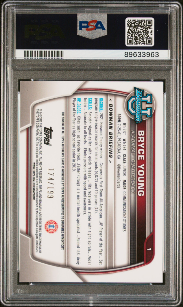 2022 Bowman University Chrome Prospects Bryce Young Chrome Pros-Auto-Lava Ref.