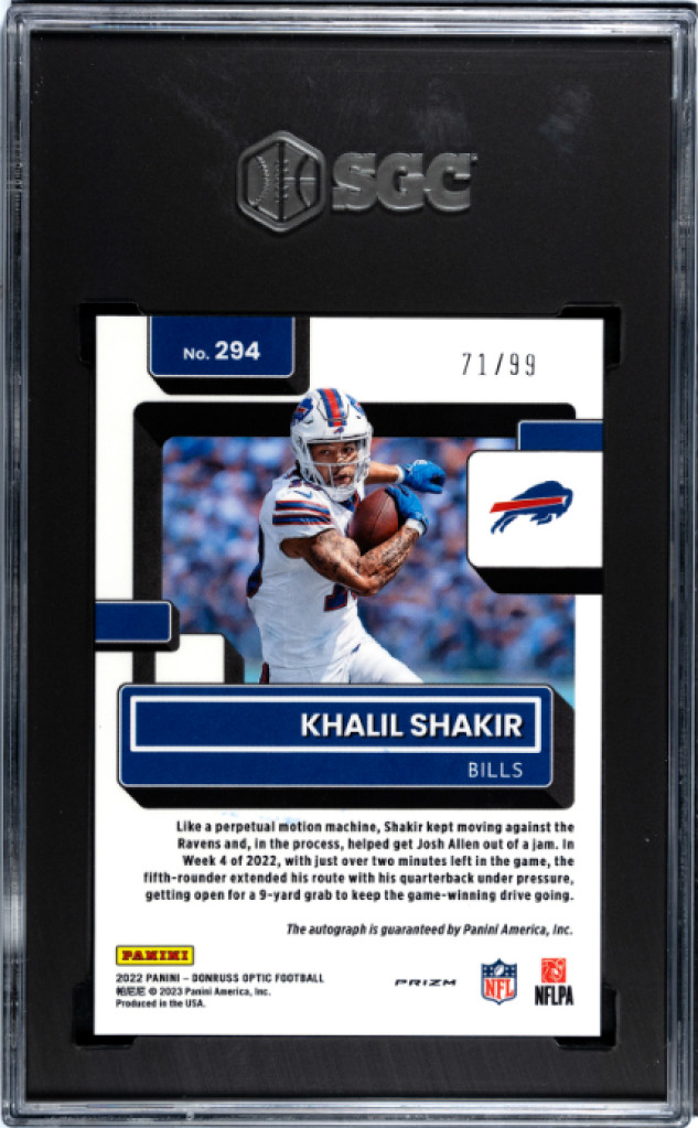 2022 Donruss Optic Blue Prizm Auto /99 Khalil Shakir RC SGC 9.5/10 BILLS