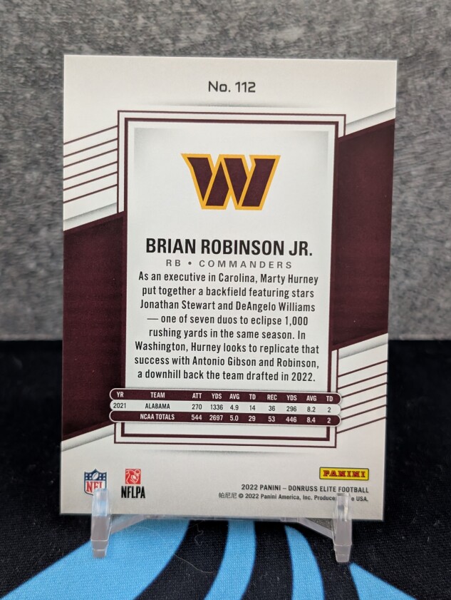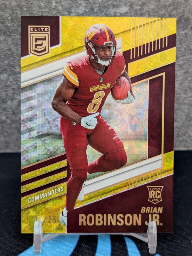 This is a 2022 Elite Brian Robinson Jr. Rookie RC Yellow /75. The exact card is pictured.