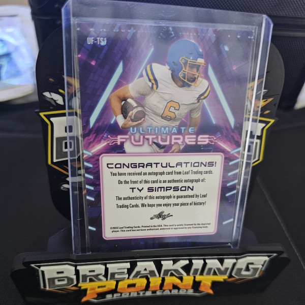 2022 Leaf Ultimate Draft Ultimate Futures Gold 92/99 Ty Simpson #UF-TS1 Auto