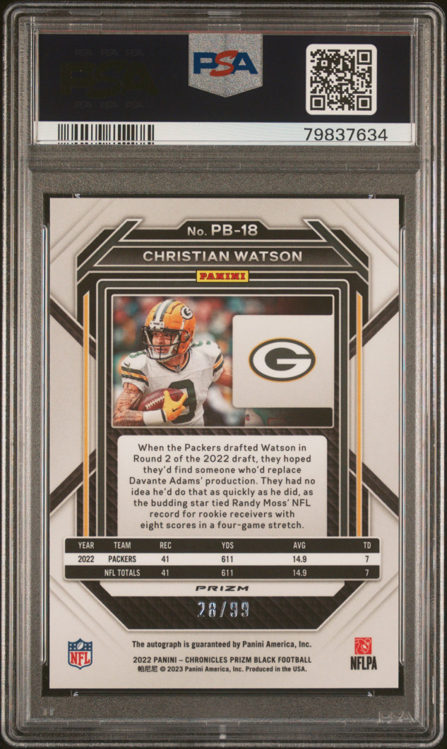 2022 Panini Chronicles Prizm Black Christian Watson Prizm Black-Signature-Red