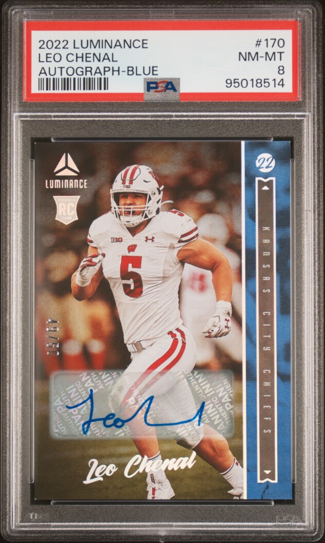 2022 Panini Luminance Leo Chenal Autograph-Blue PSA MINT 8 ROOKIE