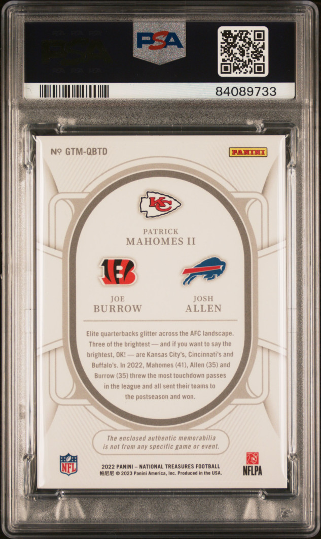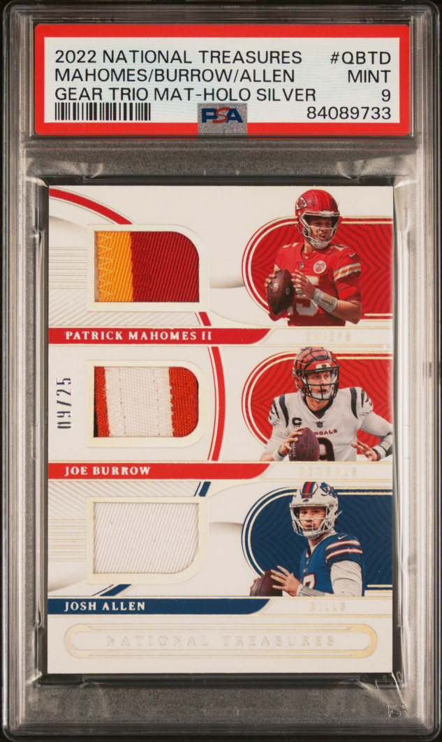 2022 National Treasures Holo Silver Mahomes Burrow Allen PATCH JSY # 9/25 PSA 9