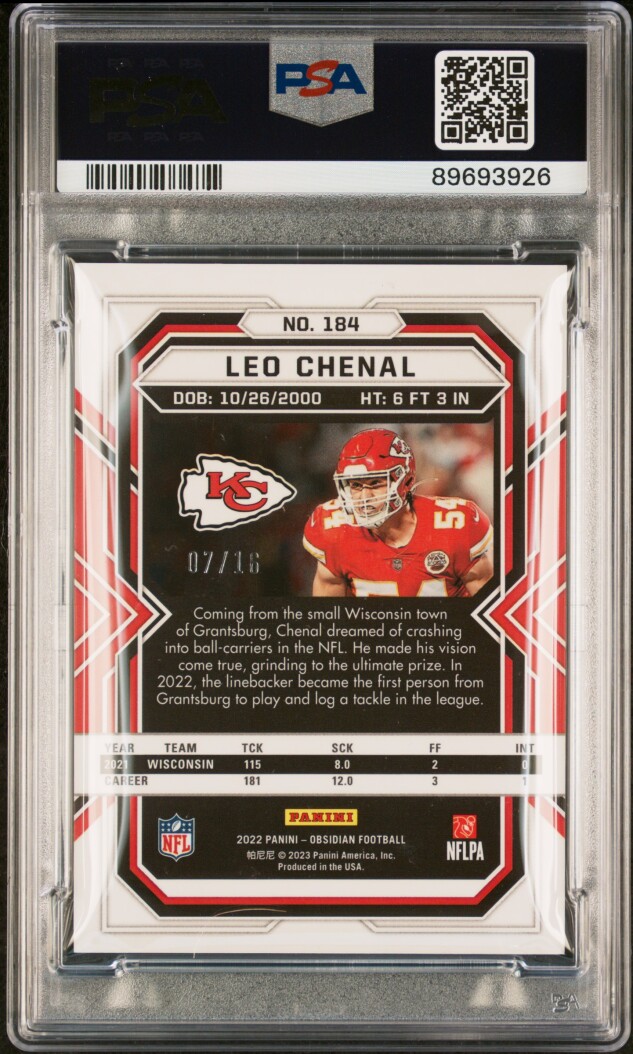 2022 Panini Obsidian Leo Chenal Electric Etch Purple Flood PSA 7 RARE /16