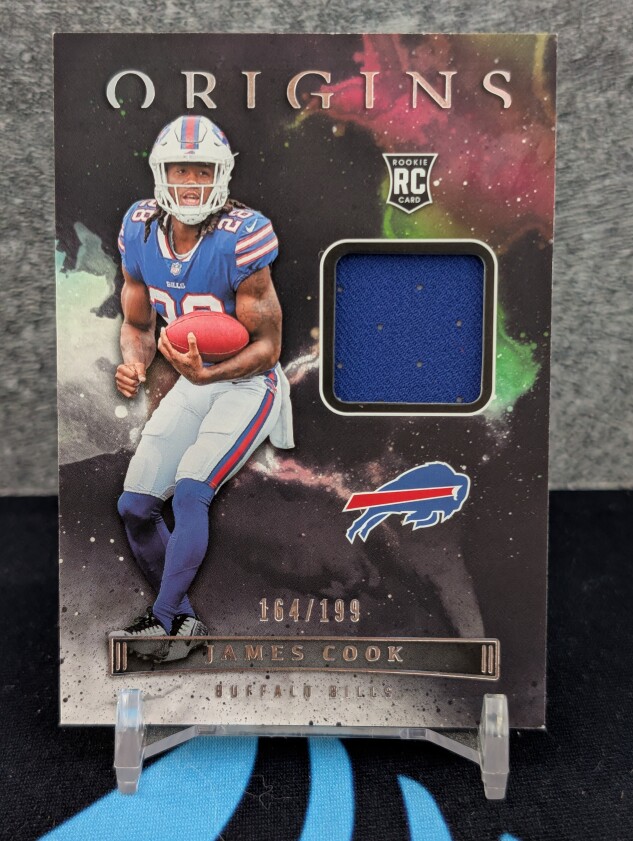 This is a 2022 Panini Origins James Cook Rookie RC Jersey Patch /199. The exact card is pictured.