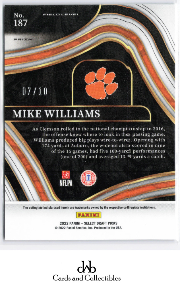 2022 Panini Select Draft Picks #187 Mike Williams Red and Green Squares #/10