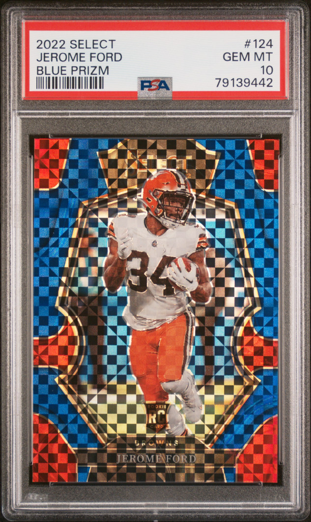 Jerome Ford 2022 Select Blue Prizm. Graded PSA 10.