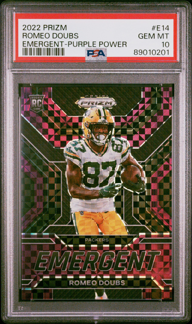For sale is a Romeo Doubs 2022 Prizm RC with a bookend serial number of 49/49, with a PSA population of only 7. Thank you for looking!