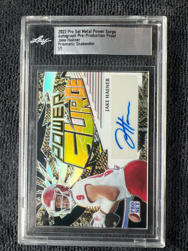 2022 Pro Set Metal Power Surge Autographed Pre-Production Proof Jake Haener Prismatic Snakeskin 1/1