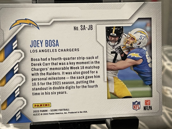 2022 Score - Sack Attack Joey Bosa #SA-JB Color Match Chargers