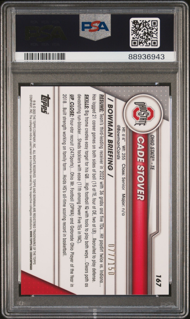 2023 Bowman University Chrome Cade Stover Fuchsia Mini Diamond Ref /150 PSA 10