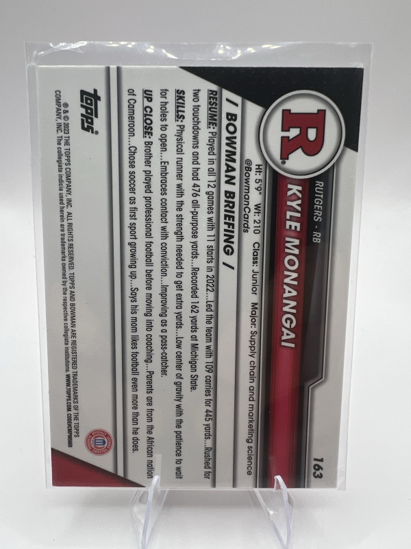2023 Bowman University Chrome Kyle Monangai #163 Pink Refractor (RC) Chicago