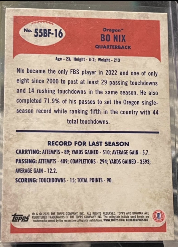 2023 Bowman University Chrome 1955 Bowman Football Bo Nix #55BF-16 (RC)
