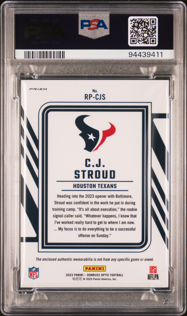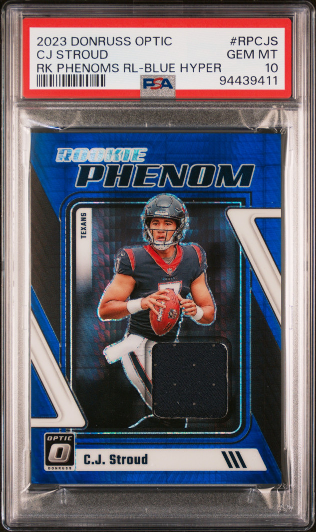 2023 Donruss Optic Rookie Phenoms Blue Hyper CJ Stroud RC Patch PSA 10 GEM MINT