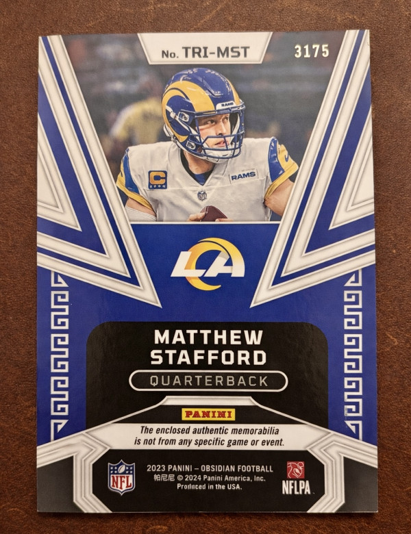 2023 Matthew Stafford Obsidian Trifecta patch /75 TRI-MST