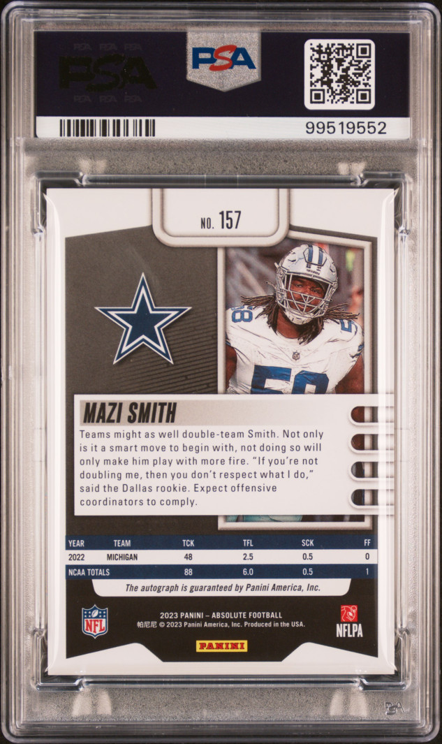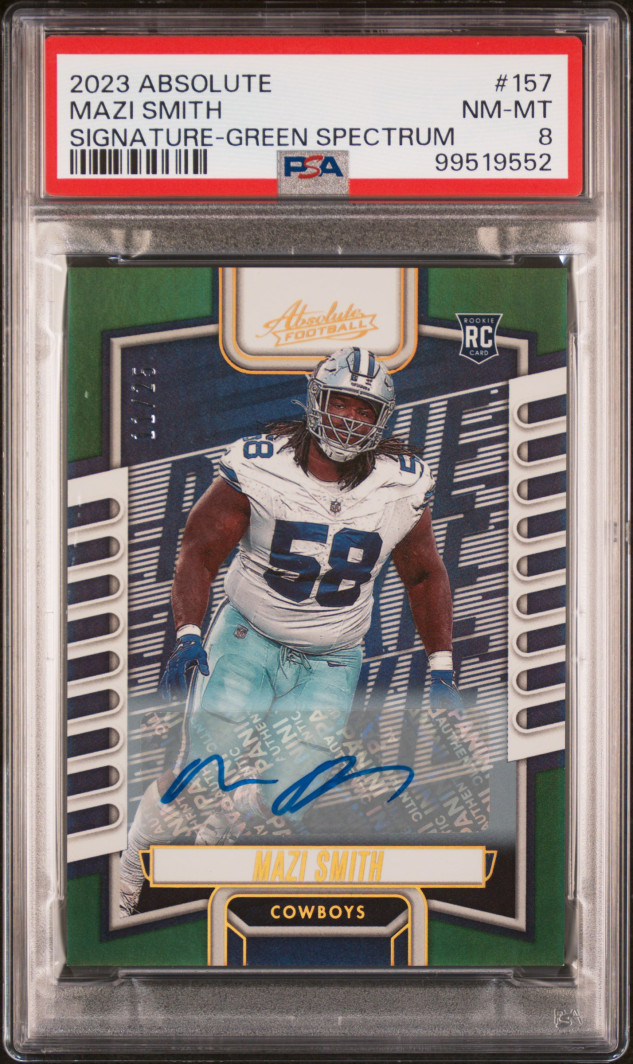 Rookie Mazi Smith to 25 auto for sale. From the absolute set. Unfortunately it only got a PSA 8 but comps show it’s still worth $25 so may as well sell it. HMU for deals