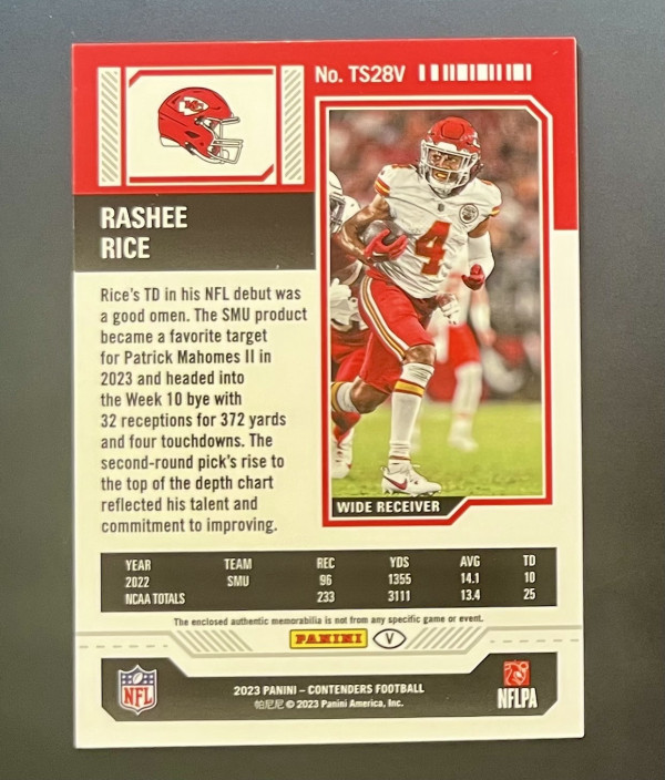 2023 Panini Contenders Rashee Rice Rookie Ticket Patch Variation